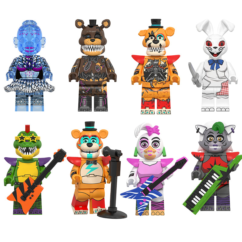 Arctic Ballora, Corrupt Freddy, Glamrock Chica, Glamrock Freddy, Montgomery Gator, Glamrock Roxy, Shattered Freddy, Vanny LEGO-Compatible Brick Minifigures