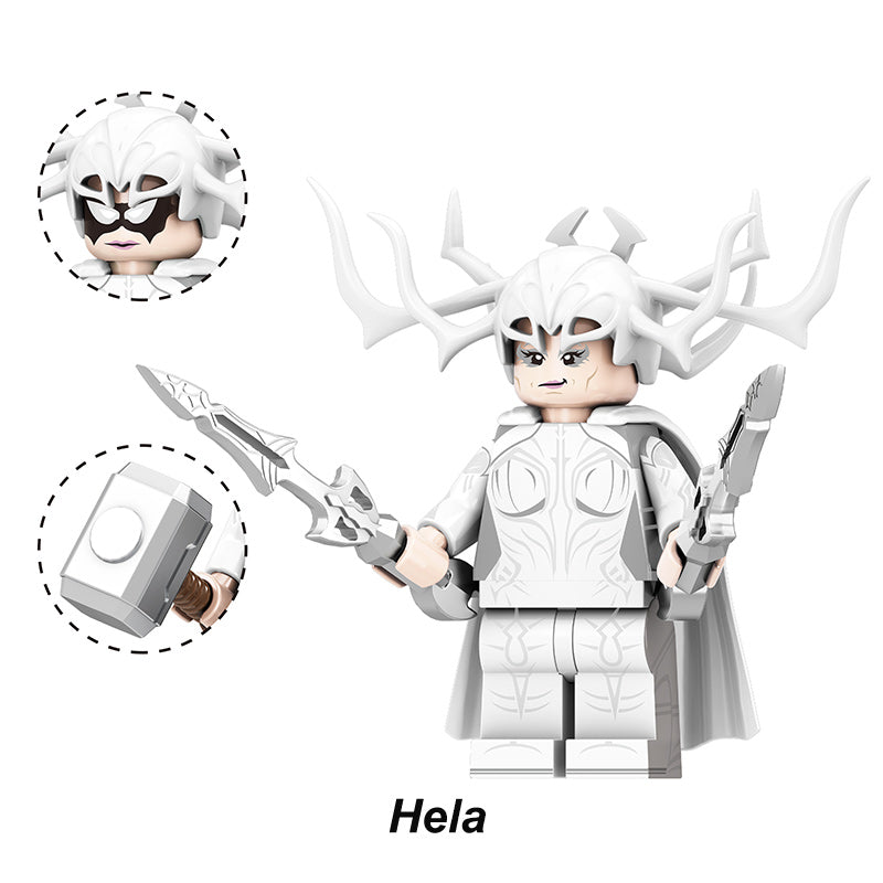 This set includes three versions of Doctor Strange featuring unique spell accessories, two versions of Spider-Man in alternate suits, two versions of Hela — her classic black armor and rare white form — and one Wong minifigure. Each figure is detailed with high-quality printing, magical energy effects, and accessories for display or play.